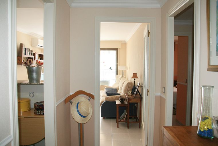 Ático esquinero en segunda línea de playa de 90 m2, 2 Habitaciones, 1 baño, Cocina independiente, armarios empotrados, totalmente amueblado y equipado, aire acondicionado frio/calor, en perfecto estado, parking para 2 vehículos, gran terraza de 95 m2, toldo, jardín y piscina comunitarios, vistas al mar y montaña.