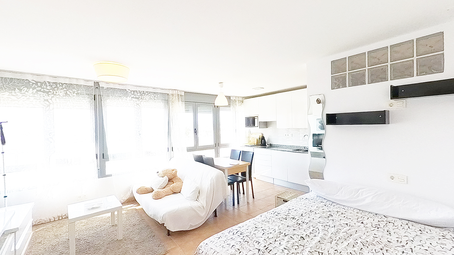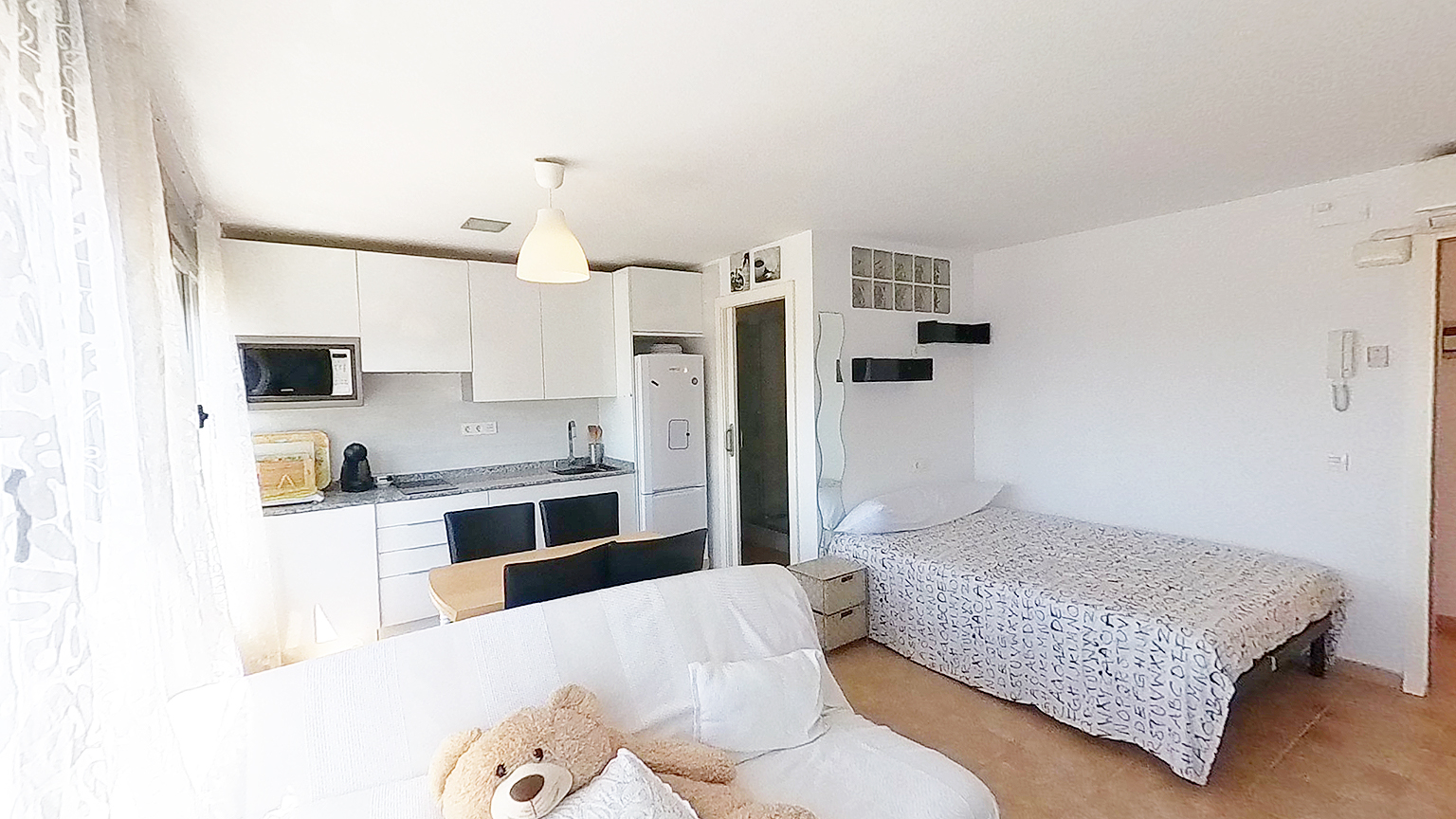 Inmueble de 86 m2 con dos viviendas: Apartamento: 2 Habitaciones, 1 baño, salón, cocina americana, terraza, completamente amueblado y equipado. Loft: Salón dormitorio, cocina americana, baño, ventanas de aluminio con doble cristal, plaza de parking, piscina y jardín comunitario, edificio en segunda línea con ascensor, vista al mar, en perfecto estado, en la playa.