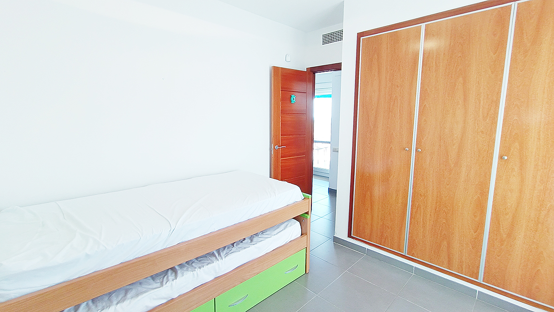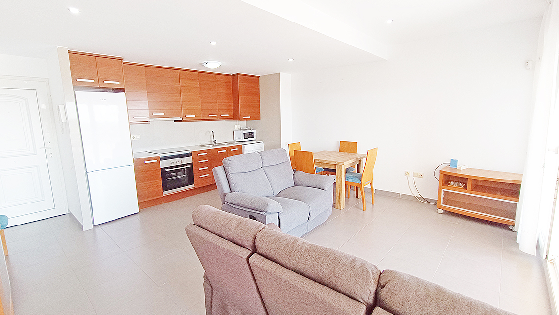 Apartamento frontal al mar de 81 m2, 2 Habitaciones, 1 baño, cocina americana, salón, ventanas de PVC oscilobatientes con doble cristal, aire acondicionado por conducto frio/calor, 2 terrazas, plaza de parking, vistas al mar, en primera línea de playa, completamente amueblado y equipado, zona tranquila, todo exterior, excelente estado acabados de calidad.