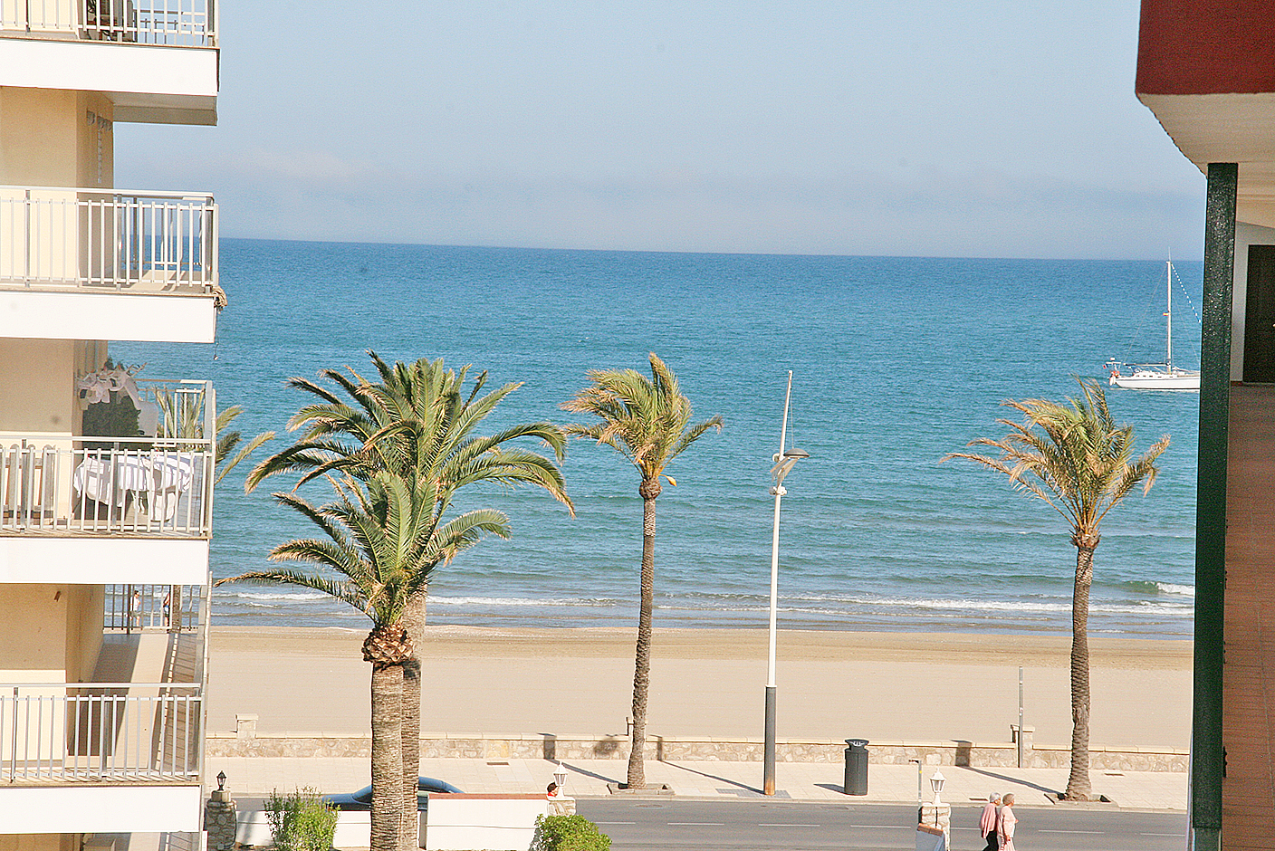 Apartamento de 75 m2, 3 Habitaciones, 1 baño, cocina independiente, terraza, completamente amueblado y equipado, ventanas de aluminio, parking, edificio en primera línea con ascensor, vista al mar y montaña, en buen estado, en la playa.